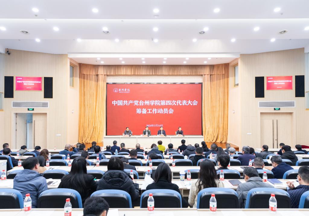 3月14日下午,中共台州学院第四次代表大会筹备工作动员会在椒江校区国际会议厅举行。校党委书记朱坚作动员讲话强调,扎实筹备和开好学校第四次党代会,坚持以习近平新时代中国特色社会主义思想为指引,全面贯彻落实党的教育方针,以立德树人为根本,以高质量发展为主线,全面深化改革创新,坚持走内涵式发展道路,凝心聚力、攻坚克难、加速蝶变、跨越发展,为实现“升大、申博、创一流”发展目标而不懈奋斗。校党委领导班子全体成员出席,党委副书记胡韶光主持。