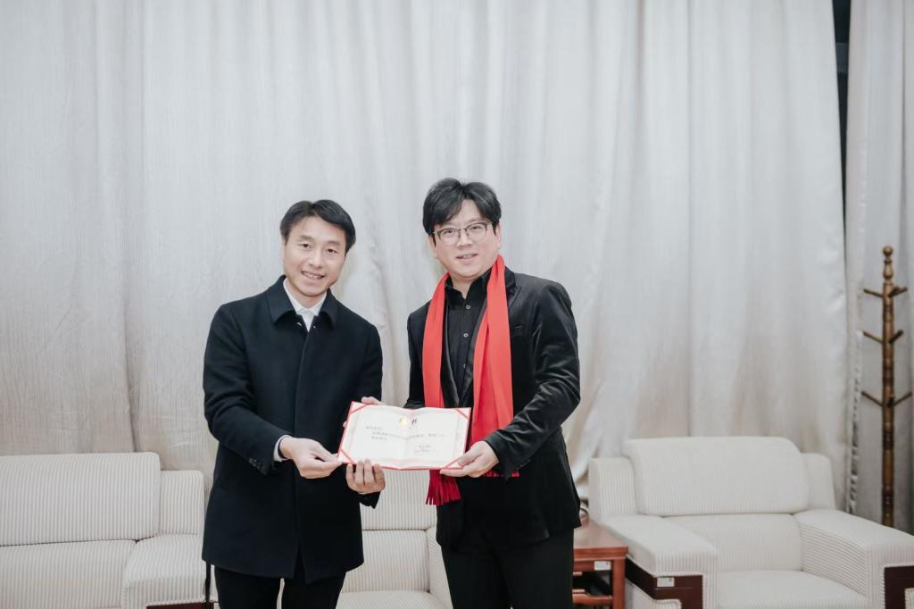 12月31日,学校举行客座教授聘任仪式,浙江音乐学院严圣民教授、郑培钦教授,浙江省歌舞剧院歌唱家高宇、满添被聘任为学校客座教授,副校长、党委委员李建军出席并颁发聘书。