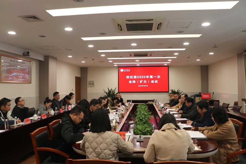 1月7日下午,校纪委召开2025年第一次全体(扩大)会议。校党委委员、纪委书记楼胆群出席会议并讲话。校纪委委员、二级纪委书记(纪检委员)及纪检监察室干部参加,校纪委副书记、纪检监察室主任郑建华主持。