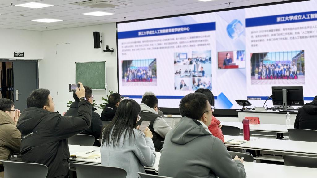 研讨会前,与会人员集中观看浙江大学“人工智能基础”系列通识课程建设报告直播会,了解浙江大学人工智能通识课程与教材建设进展情况,学习浙江大学人工智能基础通识课程分层分类做法、团队组建、教学大纲制订、教学进度计划安排、教学平台引用、课程考核等方面改革举措。