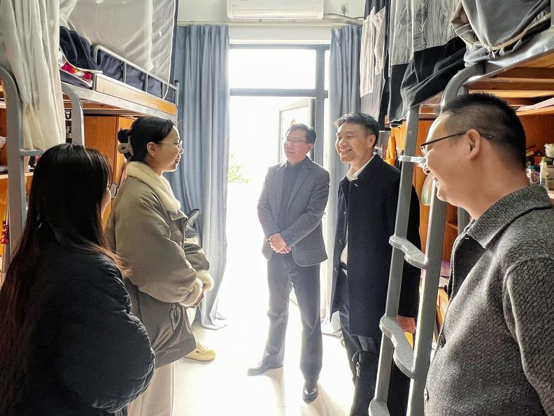 “假期生活如何?”“大家都是哪个年级的学生?”“对于自己未来的就业有何打算?”......走访过程中,李建军以亲切的话语拉近距离,详细地询问了同学们寒假期间的生活状况及开学返校后的学习规划,热情地与同学们一同“话家常”“谈规划”,对大家的学习计划和职业目标表示认可的同时,提出要充分学习、利用DeepseeK、Kimi、文心一言等人工智能软件辅助自身提高学习效率,鼓励同学们新学期要振奋精神、努力完成毕业、就业等相关事宜,踏实走好毕业生最后一公里。
