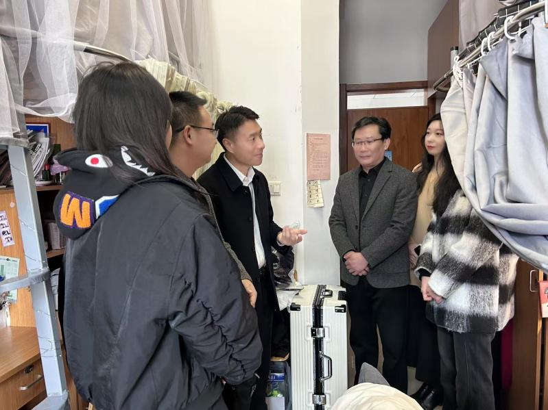 为更好地了解学生的思想动态和学习情况,2月17日,副校长、党委委员李建军在艺术与设计学院院长柯胜海、党委书记姜向阳、党委副书记王洁茹的陪同下,一同深入艺术与设计学院学生公寓走访慰问。