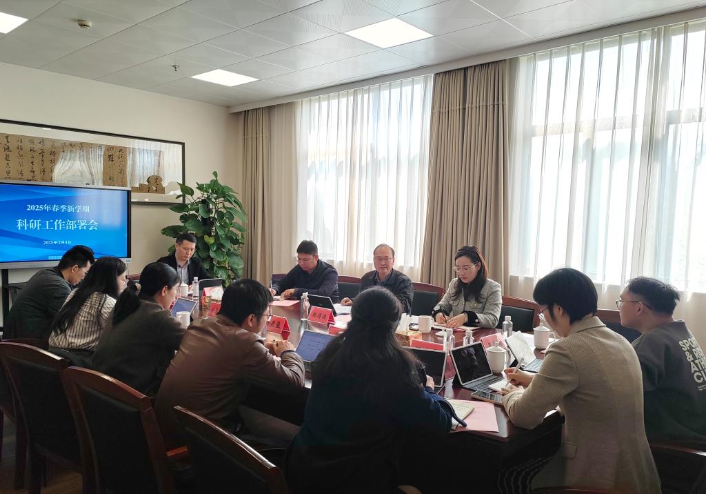 会议详细部署我校2025年科研工作重点和指标任务分解情况。会议指出,本年度科研工作要紧紧围绕学校“升大”目标,持续推进高层次奖项、省部级平台、国家项目、成果转化等标志性成果的突破。会议讨论了各二级学院年度科研考核指标分配方案,并通报国家基金和高层次奖项申报进度。这一部署为各学院科研工作指明方向,提供清晰的行动指南。会议强调了2025年上半年科技处工作安排和时间节点,希望各二级学院严格对标对表,全方位抓好落实,确保高质量完成各项科研任务。同时,各二级学院需开展科研实验项目安全风险评估检查工作,为科研工作安全有序开展保驾护航。