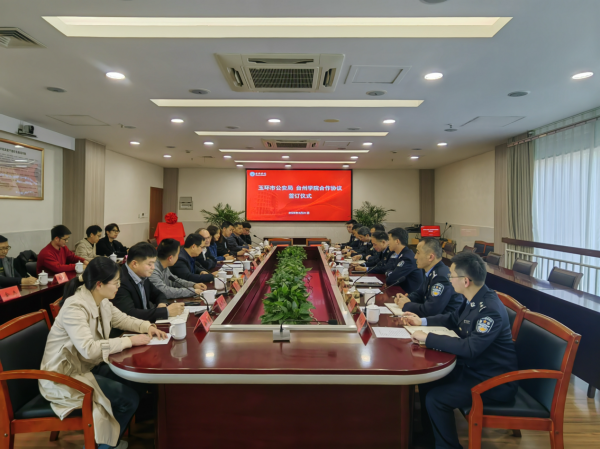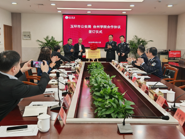 近日,台州学院-玉环市公安局共建“警务智联创新实验室”合作协议签约仪式在学校行政楼第一会议室隆重举行。副校长韩得满,台州市公安局副局长梅光辉,玉环市人民政府副市长,玉环市公安局党委书记、局长丁浪,玉环市公安局党委委员、副局长郭传钦,电子与信息工程(大数据)学院院长张石清、党委书记王奎东等出席本次签约仪式。仪式由电子与信息工程(大数据)学院副院长楼亮亮主持。