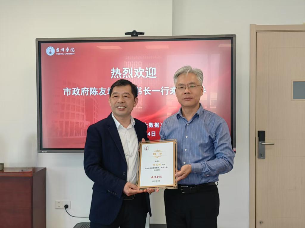 会上,杨健国为陈友增颁发聘书,聘任其为台州学院客座教授。