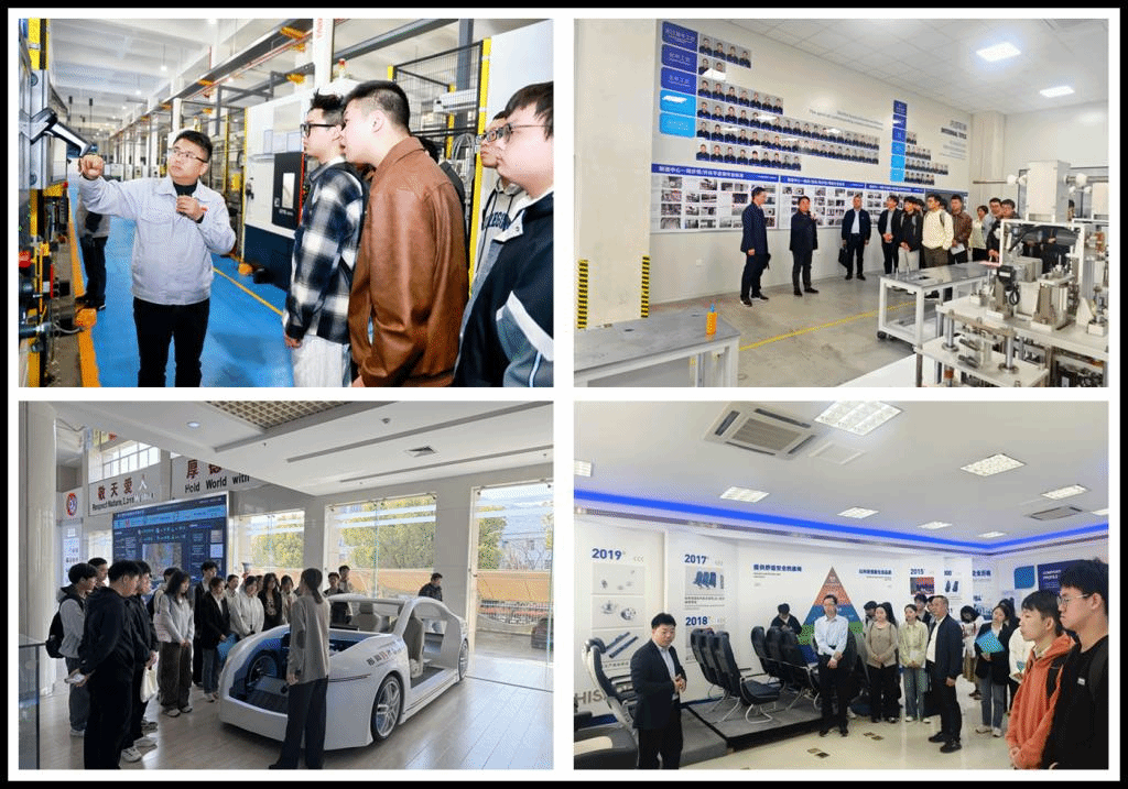 项凤日一行实地走访浙江正裕工业股份有限公司、迈得医疗工业设备股份有限公司、浙江苏尔达洁具有限公司、浙江银轮机械股份有限公司、浙江天成自控股份有限公司、浙江永贵电器股份有限公司等6家知名企业,与企业负责人深度对接人才需求、拓展合作空间。企业负责人介绍公司发展、业务及人才需求,展示在多领域的技术优势。校友结合自身经历,建议学弟学妹夯实专业基础、增强实践能力、顺应行业趋势。毕业生围绕岗位任职要求、薪资福利待遇、职业发展路径等提问,企业负责人耐心解答,现场交流氛围热烈融洽。走访中,师生参观企业展厅、车间、研发中心,了解生产流程等,为求职提供参考。