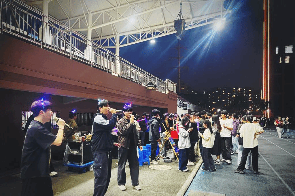活动还邀请了艺术与设计学院音乐专业同学进行演唱表演,在激情四射的歌声中,同学们互相打气,互相陪伴,用奔跑的荧光点亮了校园,形成了一道亮丽的风景线,吸引了广大师生的关注,纷纷加入到夜跑的队伍。本次荧光夜跑全程路线2km,在终点设置打卡点,完成夜跑任务后即可参与抽奖活动,并领取精心准备的奖品。