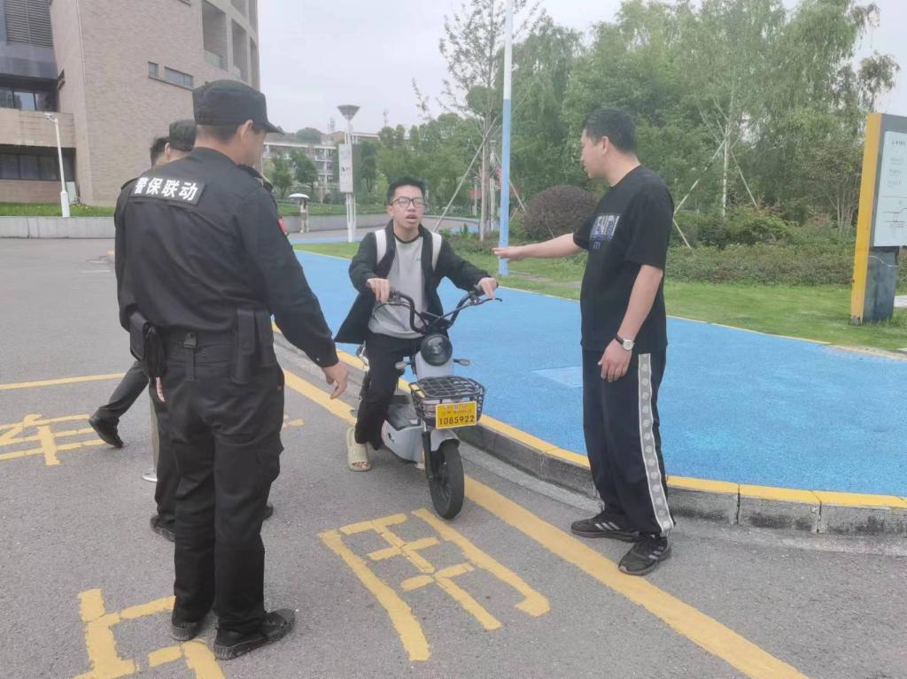 文明劝导筑防线,平安出行共守护。为加强校园道路交通安全管理,营造安全和谐的校园环境,提高师生文明交通安全意识,预防和减少交通安全事故。5月6日至10日,椒江、临海两校区同步开展文明行驶劝导行动。由保卫干部、保安队员及学生校卫队组成的文明劝导小组,在两校区重点针对机动车违停、非机动车超速超载、未佩戴头盔等行为进行现场劝导与纠正,并通过登记违规信息、安全教育等方式引导师生遵守交通规则。此次活动有效提升了师生交通安全意识,进一步规范了校园交通秩序,营造了文明和谐的校园交通环境。