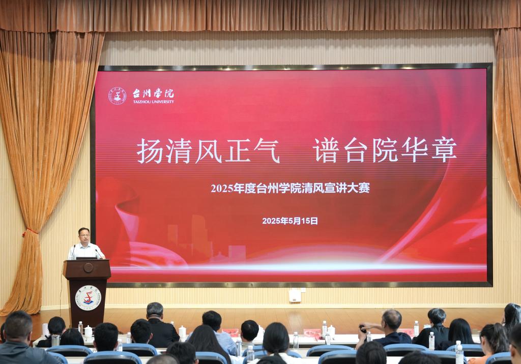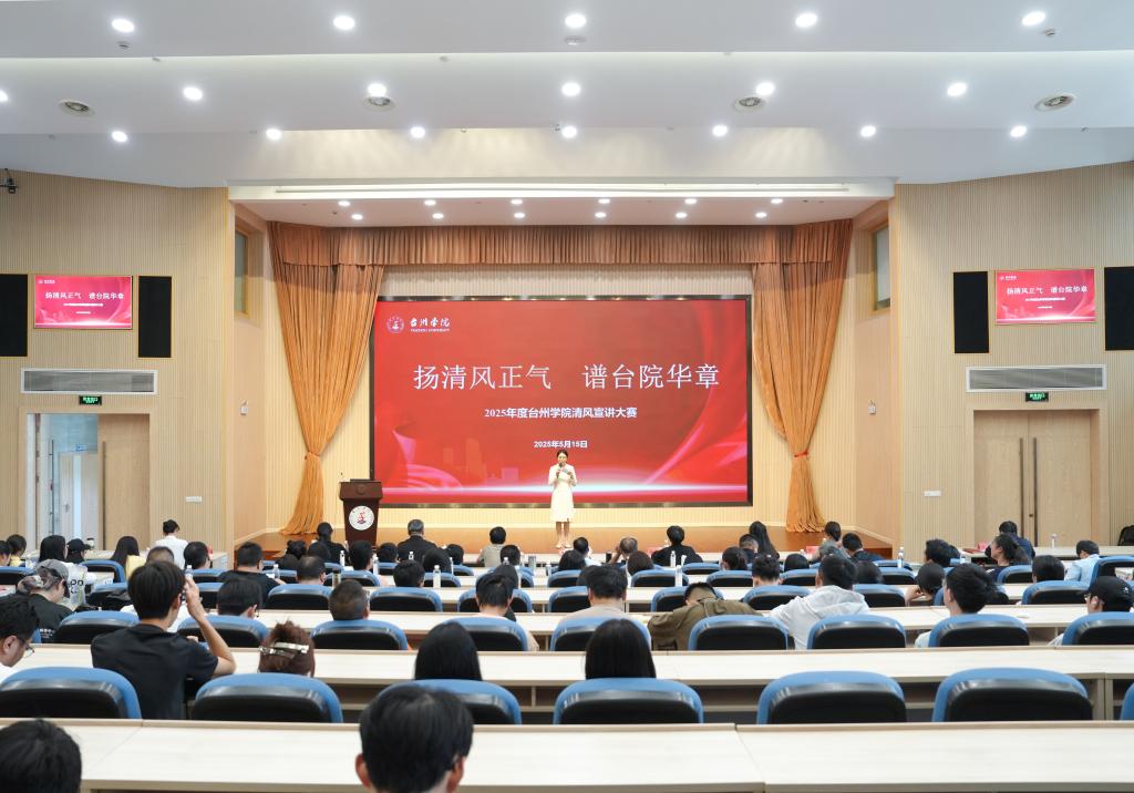 为推进深入贯彻中央八项规定精神学习教育,推进党规党纪、法律法规和校纪校规入脑入心、知行合一,5月15日下午,台州学院“510·我要廉”廉洁文化宣传月活动之“扬清风正气 谱台院华章”清风宣讲大赛在椒江校区国际会议厅举行。