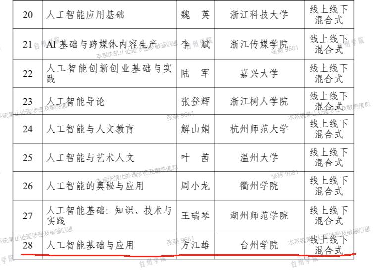 近日,《浙江省教育厅办公室关于公布2025年省级一流人工智能通识课程立项名单的通知》(浙教办函〔2025〕10号)发布,全省共有42门课程被立项为省级一流人工智能通识课程,我校方江雄老师主持的《人工智能基础与应用》课程成功入选,彰显了学校在人工智能教育教学领域的建设成效。