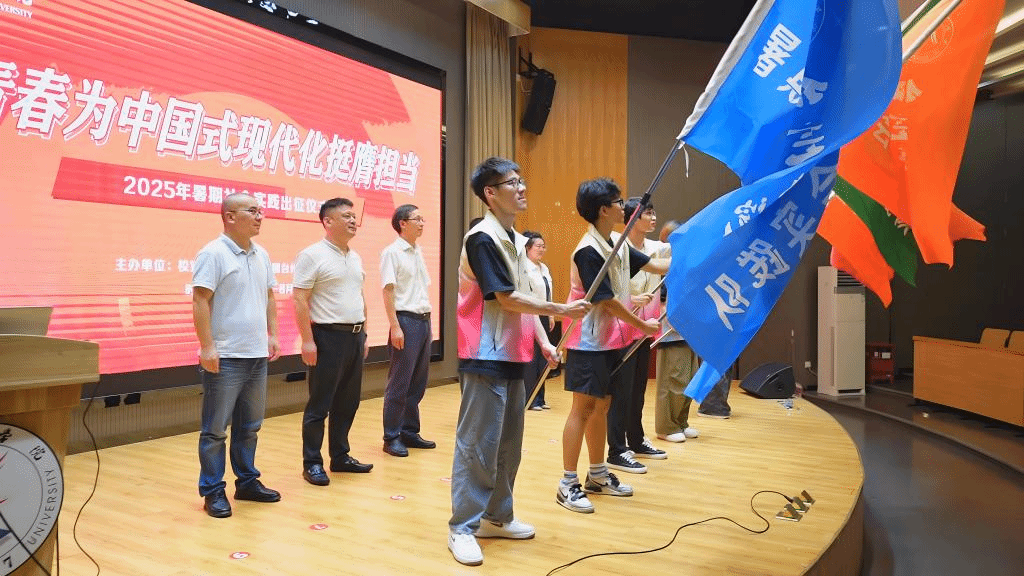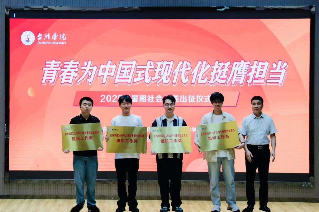 出征仪式上,蔡海江为获得2024年暑期社会实践优秀组织奖的人文学院、商学院(台州小微金融学院)、生命科学学院、马克思主义学院颁奖。生命科学学院大学生积极心理健康素养调查实践队的徐菲菲和医药化工学院分团委书记金雨娴分别作为学生代表与教师代表作社会实践经验分享。随后还举行了授旗仪式,各二级学院、职能部门实践队代表上台接受队旗。仪式结束后,校团委就社会实践安全问题、调研报告撰写、新闻报道注意事项等3个方面开展了专题培训。