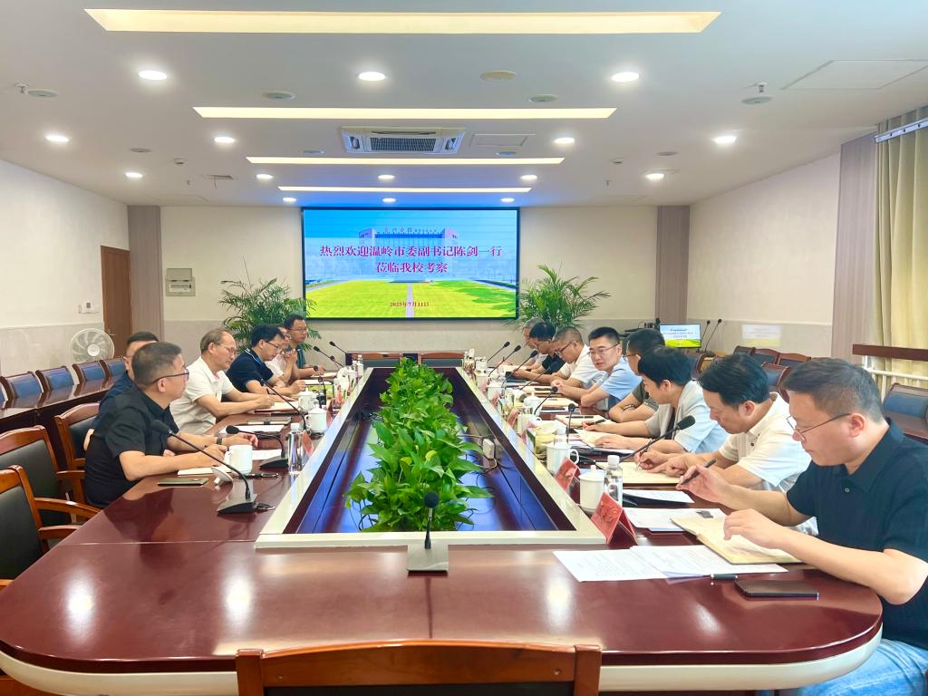 7月11日上午,温岭市委副书记、社工部部长、政法委书记陈剑率队来校,就深化校地合作事宜开展研讨交流,副校长韩得满出席会议。