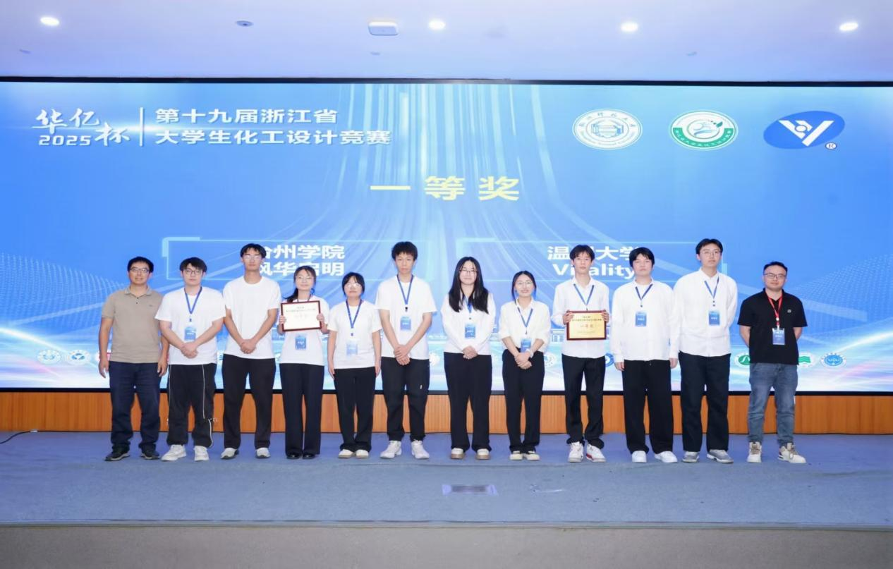 近日,2025年“华亿杯”第十九届浙江省大学生化工设计竞赛在杭州圆满落幕。医化学院由梁萍、余俊晨、梁婷婷、卢彭、和劲宏五位同学组成的“砜华启明”团队从众多参赛队伍中脱颖而出,荣获一等奖,同时获得工程图纸绘制优秀奖。