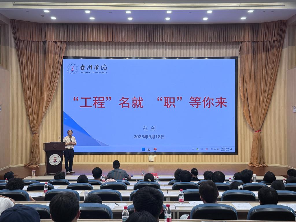范剑以《“工程”名就,“职”等你来》为题,首先阐述了学院深化“新工科”建设、践行“产教融合、校城共生”发展战略的坚定初心,以及培养面向未来卓越工程师的使命担当。他系统介绍了学院独具特色的育人体系:通过构建“产教融合、项目驱动”的课程新生态,打造“校企协同、四岗进阶”的培养主链条,形成以“成果导向、价值创造”为核心的卓越工程师能力画像,全面展现了学院在工程教育领域的创新与实践。最后,他鼓励同学们夯实专业基础,全面提升工程实践与创新能力,期待大家加入这一广阔平台,共同踏上卓越工程师的成长之路。