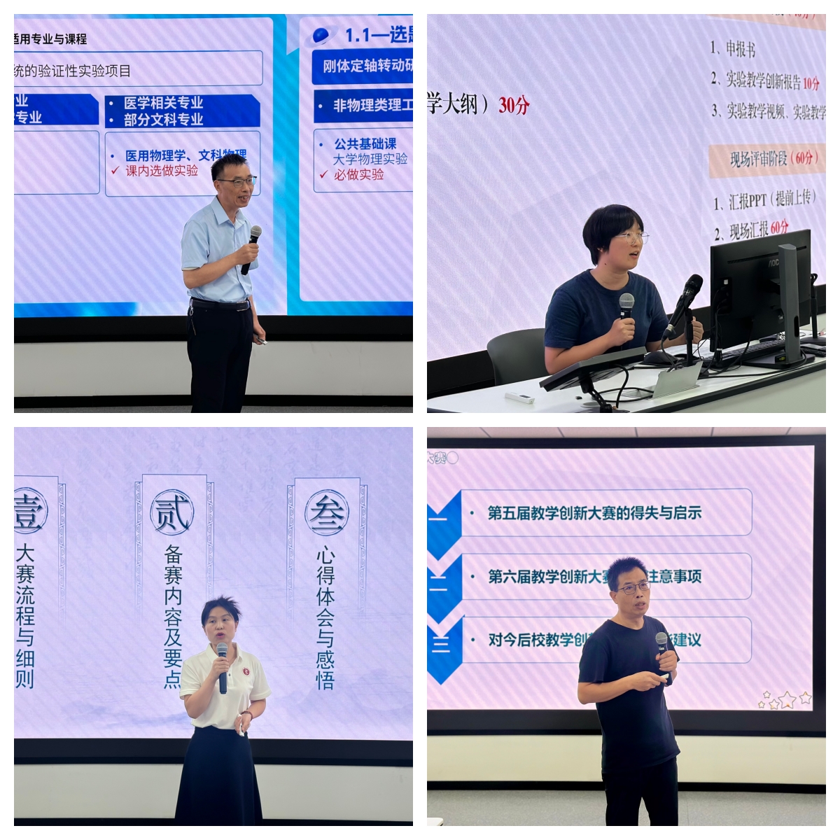 会上,教务处(教师教学发展中心)解读了台州学院第六届教师教学创新大赛的通知文件。我校在第五届高校教师教学创新大赛省赛和国赛上获奖的教师(团队)梁华秋、赵琪涵和杜瑶瑶分享了参赛经验。蔡培阳对结合近年来我校参赛培训和省赛获奖情况做了竞赛辅导报告。