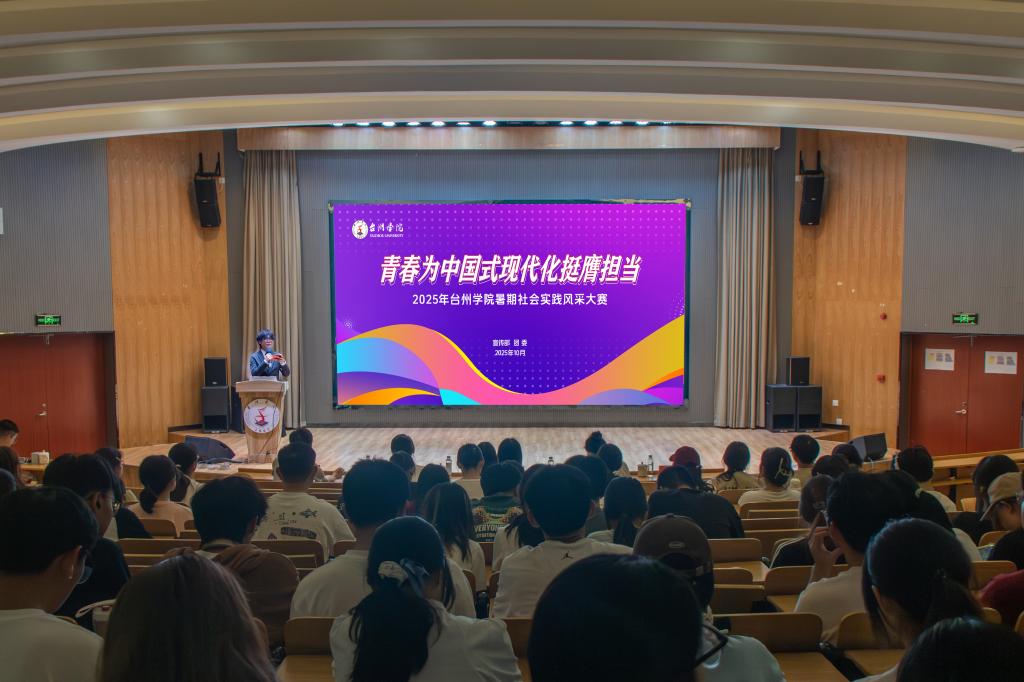 10月16日,台州学院2025年暑期社会实践风采大赛在椒江校区学生活动中心成功举行。椒江团区委书记曹娅萍,校团委书记潘垚,宣传部(教师工作部)副部长翁添富,药学院党总支副书记高阳等受邀担任评委,各二级学院分团委书记、实践队指导老师及学生代表参与本次活动。