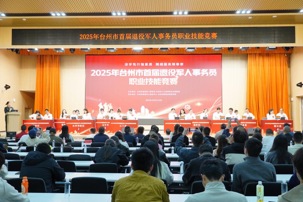 10月23日至24日,2025年台州市首届退役军人事务员职业技能竞赛在我校举行。该活动由台州市退役军人事务局、台州市人力资源和社会保障局主办,旨在加快构建退役军人事务系统专业化人才队伍,全面提升退役军人服务保障水平。省退役军人服务中心副主任陈荣赠、台州市退役军人事务局副局长崔立勇出席竞赛,副校长、党委委员李建军致辞。
