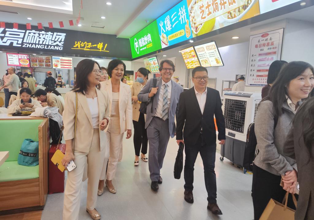 访问期间,代表团一行实地走访了科技综合大楼、智能温室与学生食堂,并赴医药化工学院参观了台州生物医药化工产业研究院与化学教研室,赴生命科学学院参观了公共分析平台与生物学、环境教研室,并在生命科学学院会议室召开了由两个学院、三个合作专业参与的座谈会。会议围绕理工学院未来获批后在招生宣传、在美课程安排、学生实习与毕业论文、暑期学校美方师生来华交流等进行了热烈研讨。