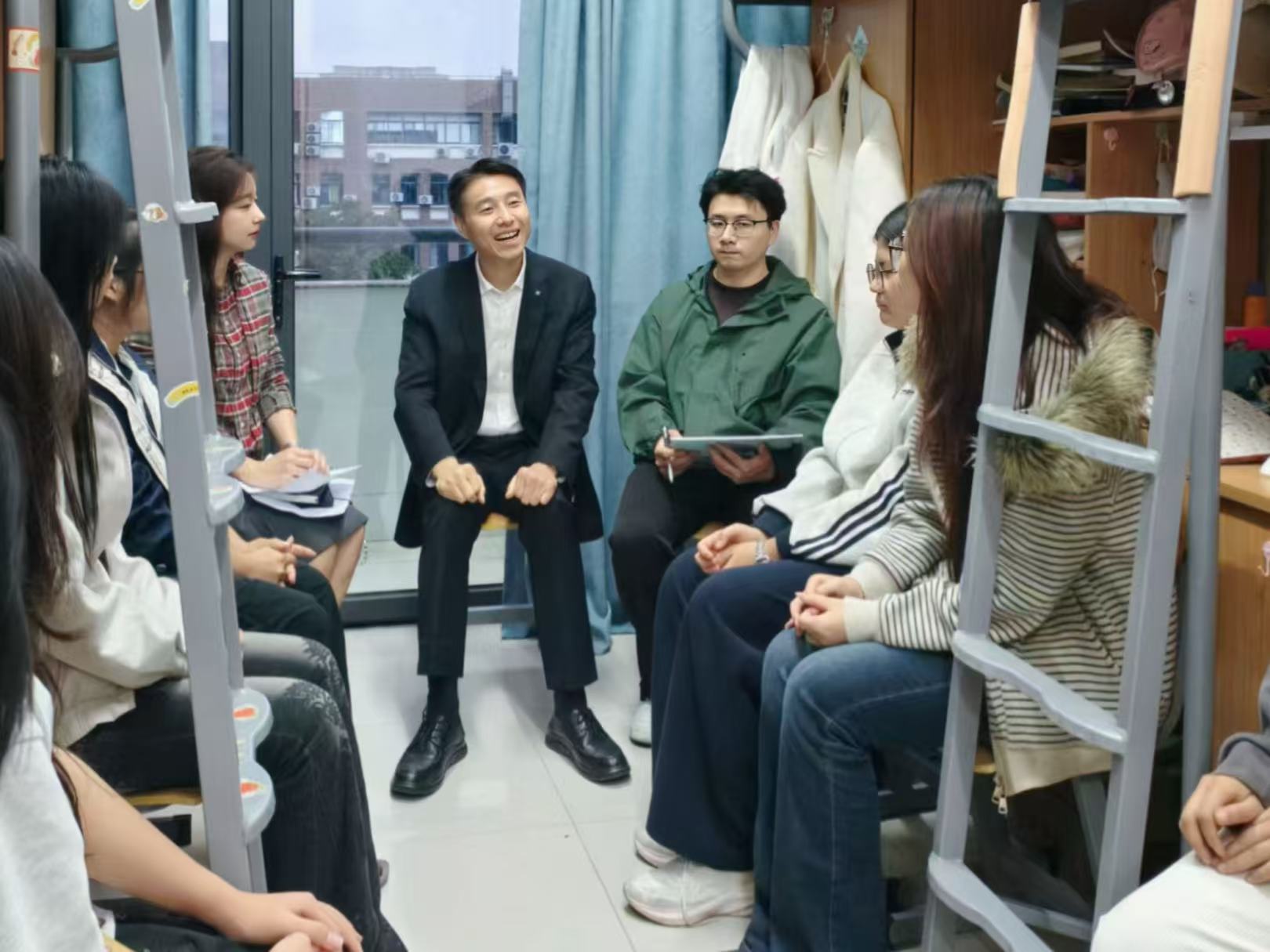 为深入了解学生思想动态与学习生活实际,推动思想政治教育更接地气、更具温度、更富实效,11月7日,副校长、党委委员李建军在我院党委副书记王洁茹的陪同下深入学生寝室,为同学们上了一堂特别的思政课。