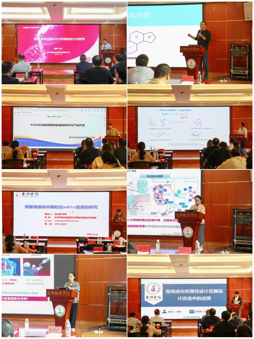 研讨会围绕“药物合成技术创新与绿色工艺”和“新型药物载体与制剂技术应用”两大主题展开。在大会报告环节,浙江博锐生物制药研究院院长聂磊、仙琚制药研究部经理张小强、海正药业创新制剂总监李勋等企业专家,以及台州学院青年教师徐山根、汪宜宇、林玉红、陈耀,分别就新型药物研发、绿色合成路径、制剂关键技术、生物材料应用等议题作了专题报告。茶歇期间,与会代表积极交流,现场气氛热烈,合作意愿强烈。