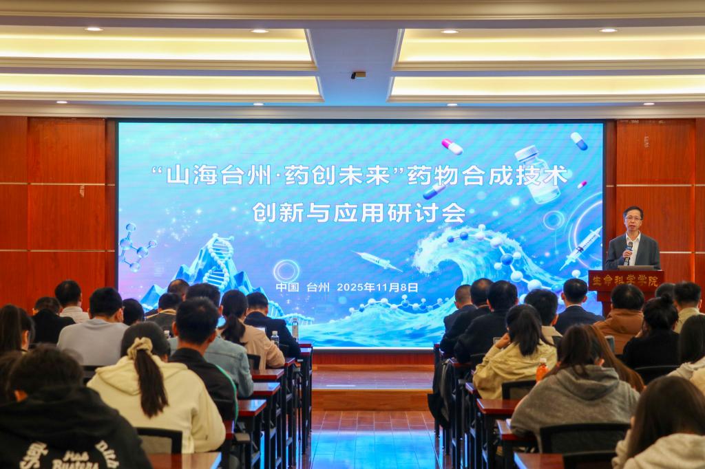 11月8日,“山海台州·药创未来”药物合成技术创新与应用研讨会在生命科学学院D241会议室举行。会议由生命科学学院联合生物基资源开发与利用浙江国际科技合作基地、台州市生物医药与高端剂型重点实验室、台州市生物质功能材料开发与应用重点实验室、台州市生物与医药重点学科、台州市立医院(台州学院附属医院)血液肿瘤内科共同主办。会议聚焦药物合成技术的前沿突破与产业应用,致力于推动产学研深度融合,构建从“合成技术—制剂开发—产业应用”的全链条创新体系,吸引了来自高校、企业及医院的多位专家学者与科研骨干参与。校党委副书记项凤日出席开幕式并致辞。开幕式由生命科学学院院长赵凯主持。