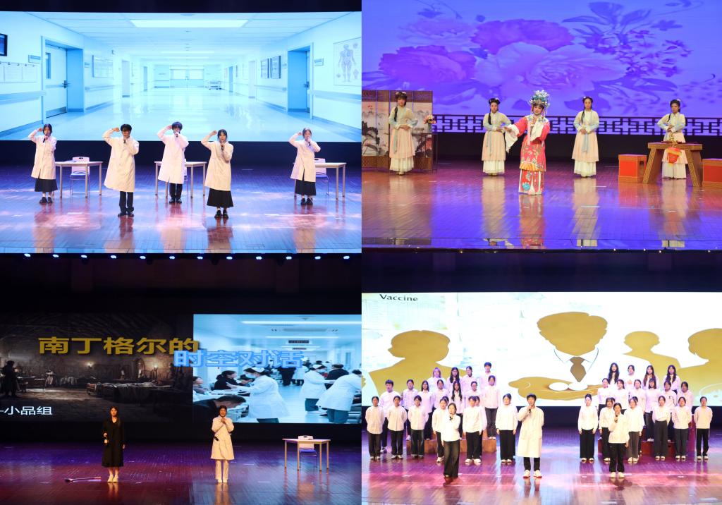 随后,医学院迎新晚会盛大启幕。P.six乐队开场引燃现场气氛,晚会分三个篇章推进,为观众呈现融合青春朝气与医者情怀的视听盛宴。第一篇章“青春篇:以梦为帆,医路前行”中,拉丁舞表演以动感节奏拉开帷幕;主持组朗诵《白袍青年说》,铿锵字句诠释医者初心与担当;越剧《打金枝·闯宫》婉转悠扬,让观众领略传统戏曲魅力。伴着《煮雨成虹,医路生花》的动人旋律,晚会步入第二篇章“奋斗篇:不负韶华,只争朝夕”。一曲《青歌漫舞》将灵动舞姿与悠扬歌声相融,将晚会气氛推向高潮;护理协会以手语、合唱与朗诵演绎《等下一个天亮》,传递医学人文精神。第三篇章“绽放篇:风华正茂,医路如歌”中,舞台剧《南丁格尔的时空对话》跨越百年,让观众与护理先驱精神共鸣;《和你一样》以多感官交融的创意形式,展现医学之美。压轴环节,医学院分团委书记李袁杰献唱《时差》,并与主席团成员共同表演《我的未来式》,为晚会画上圆满句号。