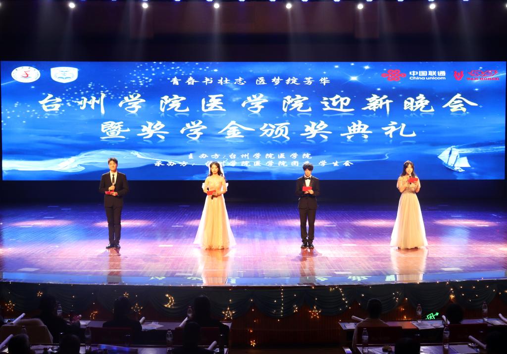 12月11日晚,台州学院医学院2025年“医路毅行——青春书壮志,医梦绽芳华”迎新晚会暨奖学金颁奖典礼在椒江校区大会堂举行。