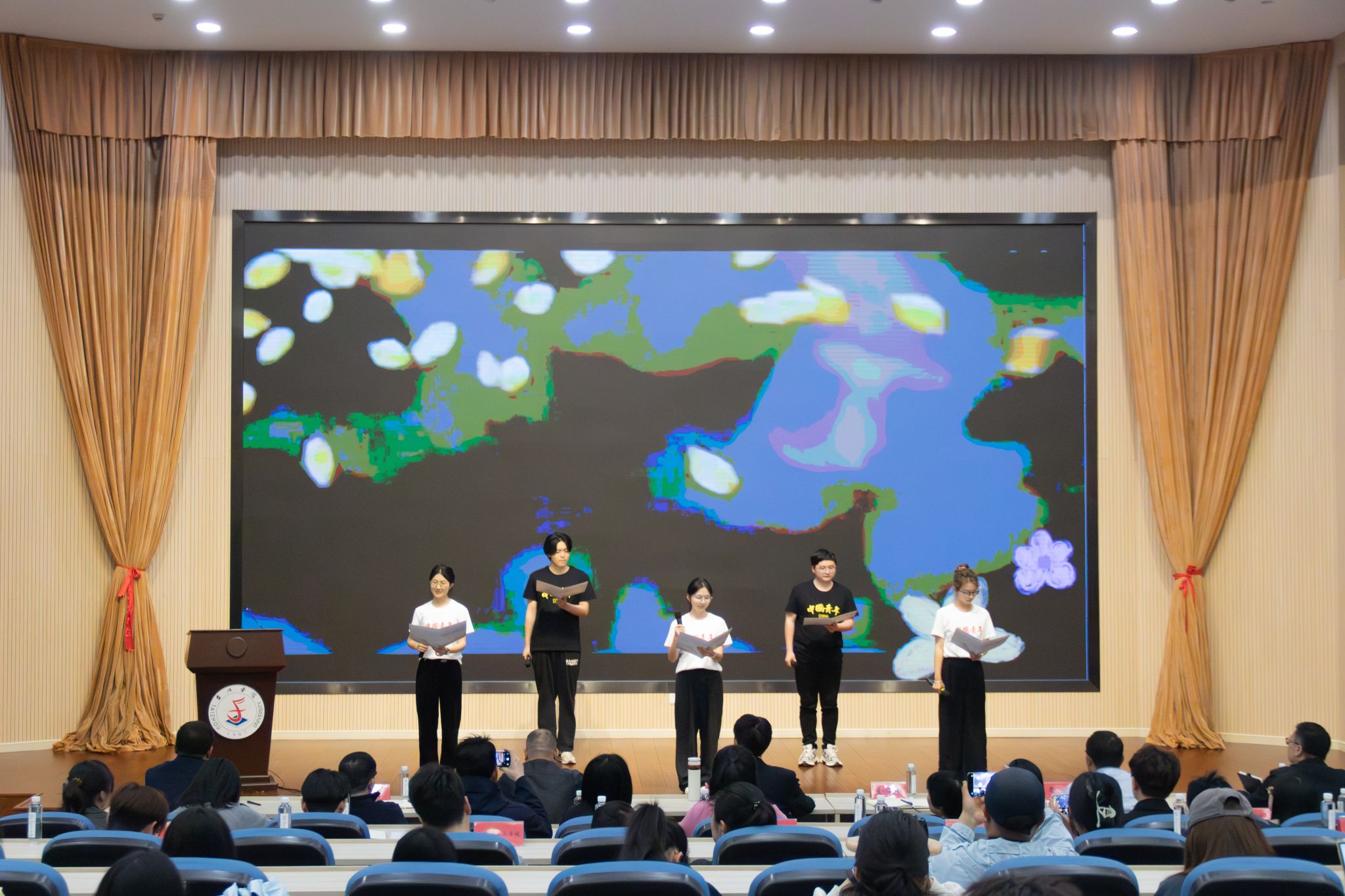 暖场节目环节,诗词传唱《勿听》和戏曲越剧《西厢记·琴心》在婉转曲韵中开启书香之约;深情的朗诵《闪耀吧 青春的火光》,传递出青年学子以阅读点亮青春、奔赴新征程的昂扬信念。