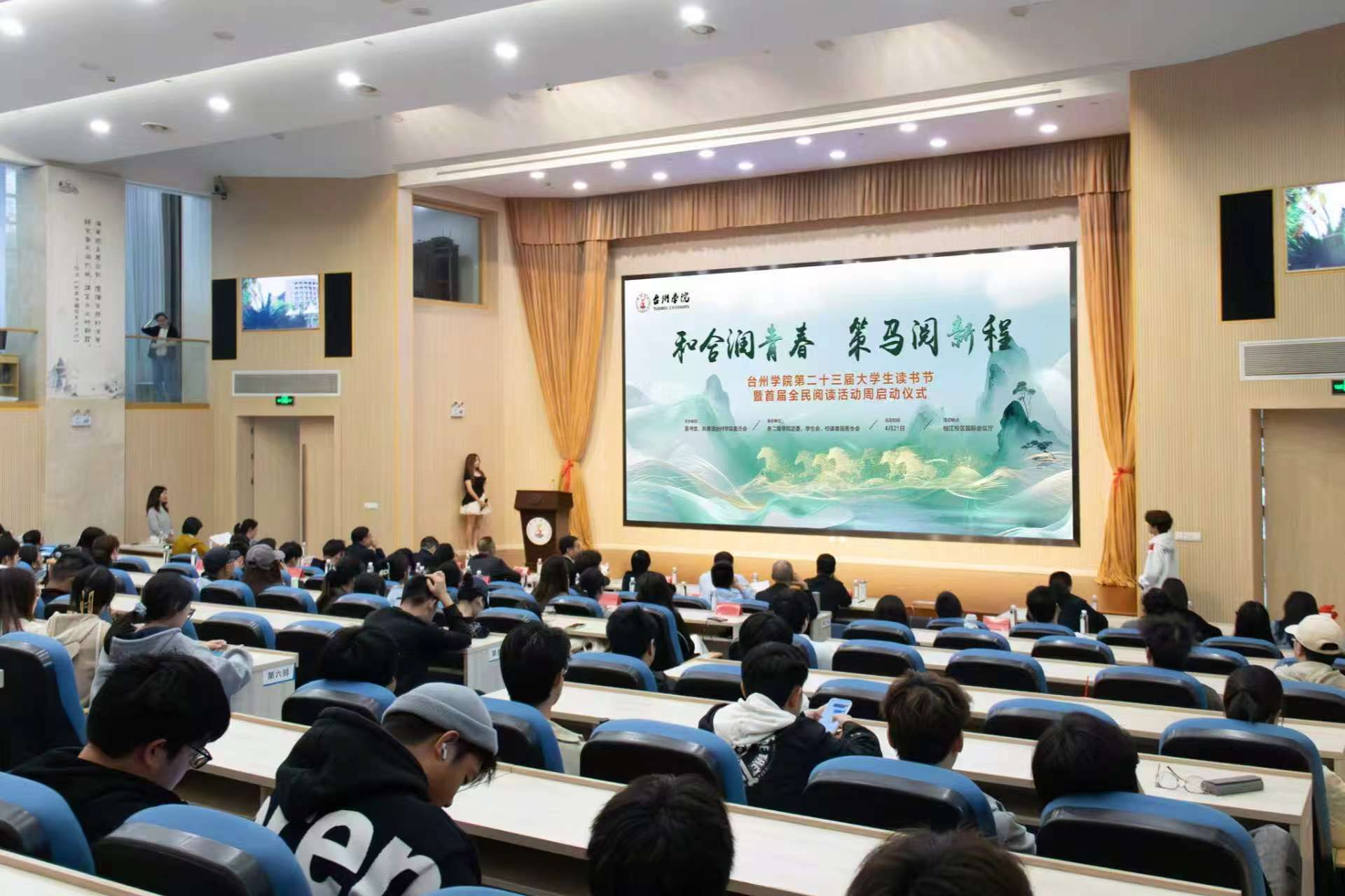 4月21日下午,台州学院第二十三届大学生读书节暨首届全民阅读活动周在椒江校区国际会议厅拉开帷幕。本届读书节以“和合润青春,策马阅新程”为主题,由图书馆与校团委联合主办。副校长、党委委员李建军出席并宣布开幕。相关职能部门负责人、二级学院相关分管领导、分团委书记及师生代表共同参加活动。开幕式由校团委书记潘垚主持。