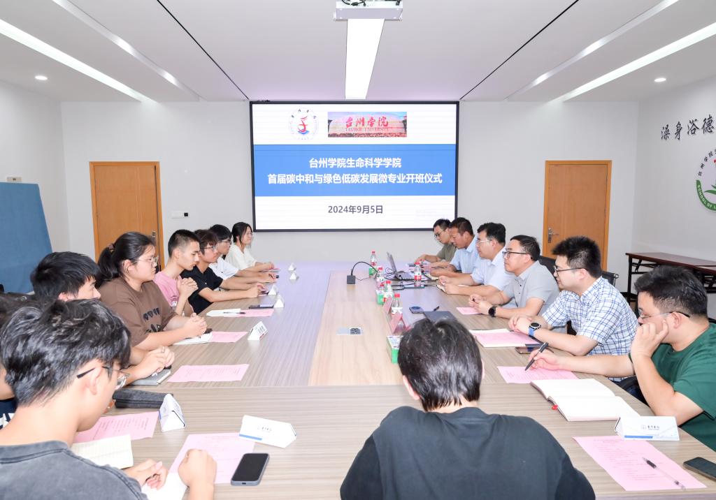 9月5日,我校首届“碳中和与绿色低碳发展”微专业在生命学院开班。台州市环境科学设计研究院党委副书记王浩、生态所所长陈毓遒,台州学院生命学院副院长齐鑫、微专业教师代表以及全体新生出席了开班仪式。微专业负责人章志成主持开班典礼。