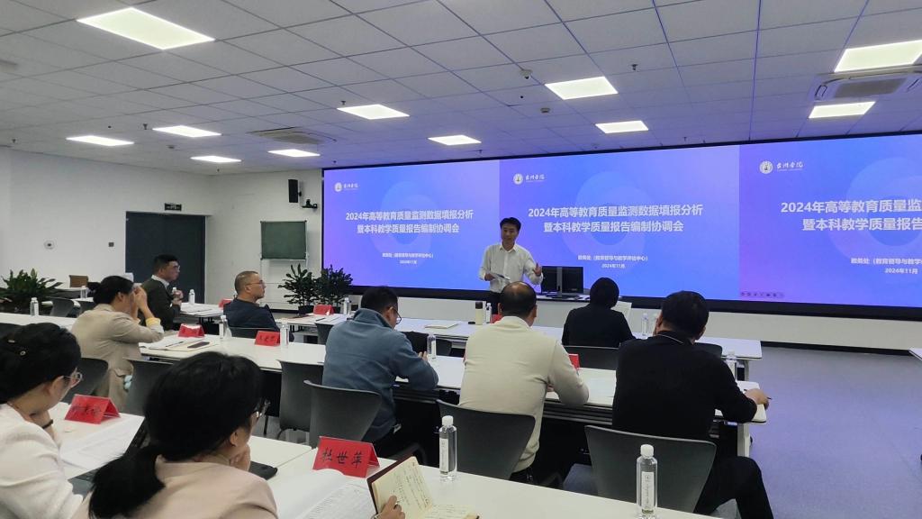 教务处传达了上级部门关于开展2024年全省高等教育质量监测数据填报工作和做好2023-2024学年本科教学质量报告编制和发布工作的通知,汇报了前期工作的进展情况,并就核心数据进行了对比展示,对后续工作安排及材料要求做了说明。