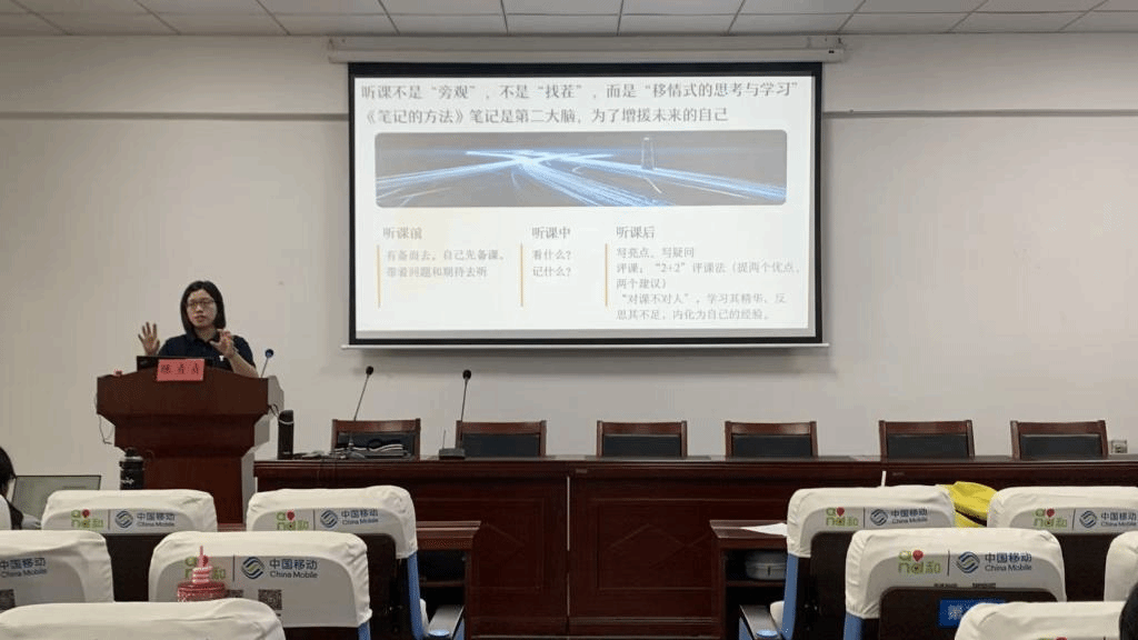 围绕“如何提升教学竞争力”,陈老师从“备课、上课、听课”三个核心环节展开实操性分享。备课环节,强调优质教学设计是教学成功的基础,建议以“SMART原则”明确教学目标,同时重视研读英语课程标准与教材,在备学生、备教材、备教法、备资源的过程中,抓住“主线、重点、亮点”三个核心。上课环节,提出“上课是‘预设’与‘生成’的共舞”,建议在课堂中把握节奏、关注学生状态,通过清晰指令、眼神交流与得体言行,实现师生高效互动。听课环节,阐明“带着问题听、全神贯注听、理性评课”的方法,强调评课应“对课不对人”,并介绍了评课的“三看原则”,助力师范生通过听课快速成长。