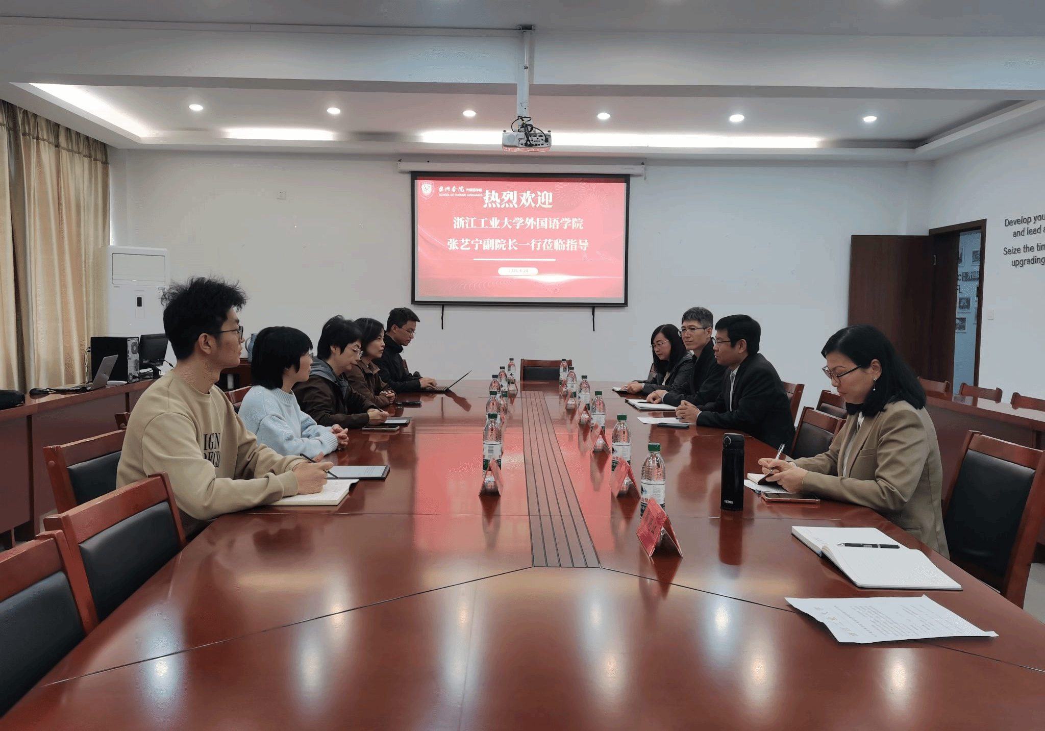 4月24日上午,浙江工业大学外国语学院副院长张艺宁率队来台州学院外国语学院,就大学外语机考及iTEST智能测评云平台应用开展调研交流。外国语学院院长王刚、副院长崔瑞国、大外部主任汪琴、教务办主任郭晓江和大外部副主任曲洪等出席了此次交流会。