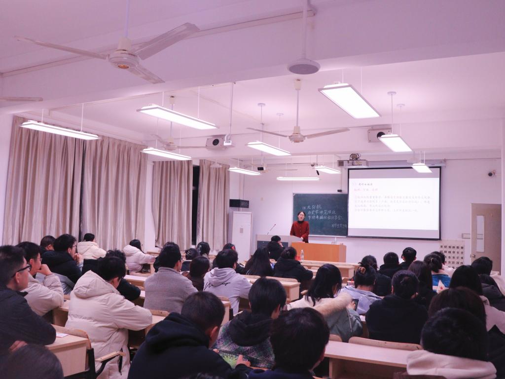 2月27日晚,人文学院第十一期“烛光引航”——历史学(师范)专业专场考编经验分享会于2101教室举行,21历史班杨子吟作经验分享,辅导员杨盛、22历史班、22历史卓越班同学参加本次活动。