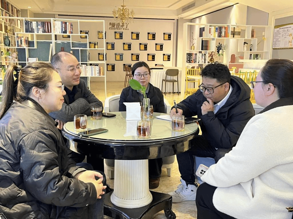 在交流过程中,横店影视公司周经理详细介绍了公司在相关领域的情况。林军辉和娄欣星则重点介绍了学院网络与新媒体、汉语言文学等专业的学科建设情况和人才培养方案,以及网络与新媒体专业在数字内容生产、智能传播研究方向的特色课程体系。