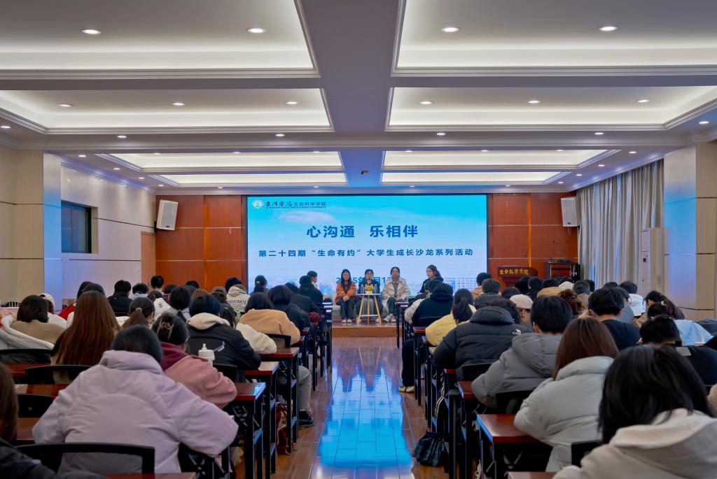 3月13日,生命科学学院第二十四期“生命有约”大学生成长沙龙活动在学院大会议室举行。活动邀请了何雨烨、方瑾、陈嘉译、黄思涵等四位科学教育专业考编提前批成功上岸的大四学生,为到场的全体2023级、2024级科学教育专业学生分享宝贵经验,活动由学院团学会心安部副部长王觉娅主持。