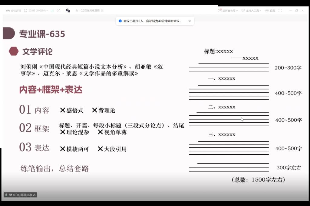 谈及专业课的备考,任湜分享了自己的备考历程,并总结出了“框架意识+真题”的备考方式。针对具体专业课科目,她分别介绍了所用书籍及学习方法。最后,任湜贴心地分享了四点背书小窍门,她建议采用“化繁为简,由简到繁”的方式背书,同时运用费曼学习法,可以通过音频记忆法来增加内容的逻辑感,以及通过有规律地重复来强化记忆。此外,任湜多次提醒同学们,需根据自己的目标院校来制定相应的复习方式,她还强调备考过程中最重要的是掌握节奏和稳定心态。