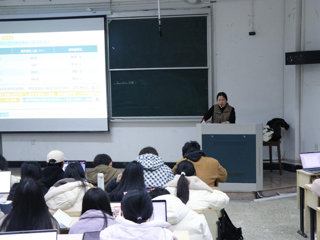 讲座伊始,袁利丹从国家政策和企业招聘等方面对当前考研的宏观环境进行了详细解读。同时,她结合自身经历,讲述了同年龄段时的迷茫与奋进,阐述了考研对职业发展的深远影响,让同学们真切认识到考研不仅是提升学历的途径,更是为未来职业发展筑牢根基。随后,她通过列举各大高校汉语言师范专业的招生数据,让同学们对考研的竞争态势有了直观的认识。
