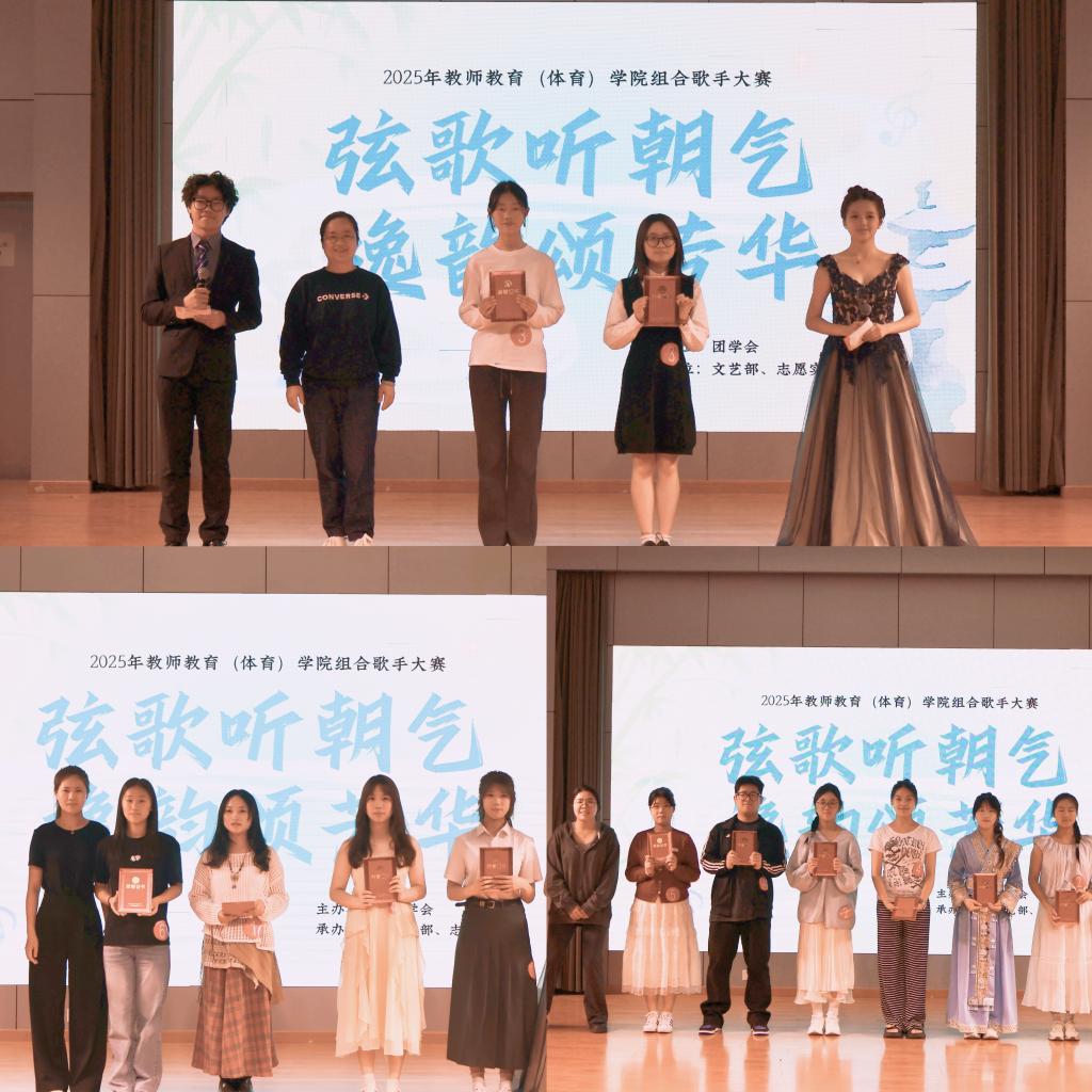 莘莘学子,以“聆听”为媒,以歌筑梦,以光寻声,4月11日晚,教师教育(体育)学院于学生活动中心多媒体厅成功举办了2025年“弦歌听朝气,逸韵颂芳华”组合歌手大赛决赛。辅导员徐薇、屈佳妮、朱浩楠,专任教师朱思燕、徐佳鑫担任本次大赛评委。