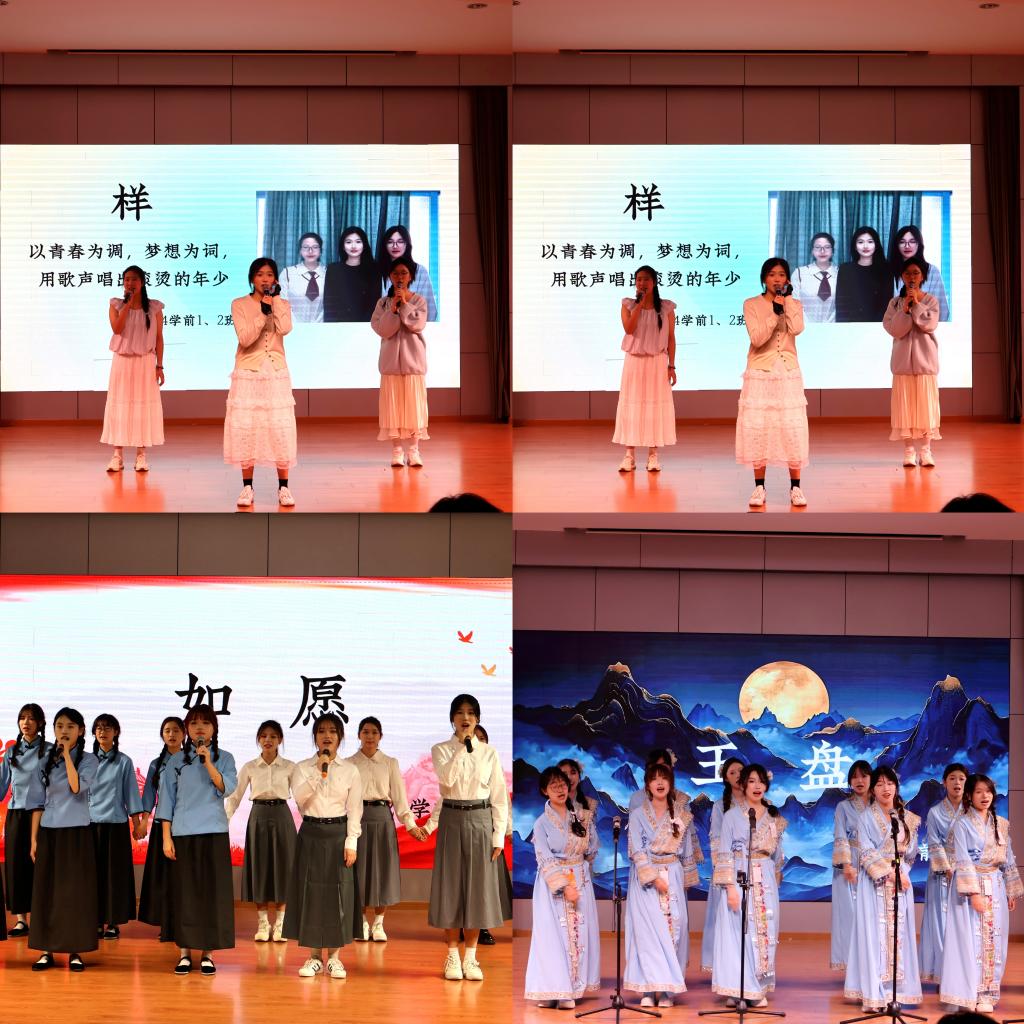 24学前5班的小组合则另辟蹊径,选择了一首小众的《小河淌水串烧》。他们用质朴无华的歌声,辅以独具匠心的改编,将歌曲中那细腻入微的情感,如涓涓细流般缓缓注入观众心间。现场观众沉醉其中,仿佛置身于歌曲所描绘的情境之中,与台上的歌手一同沉浸在音乐的世界里。