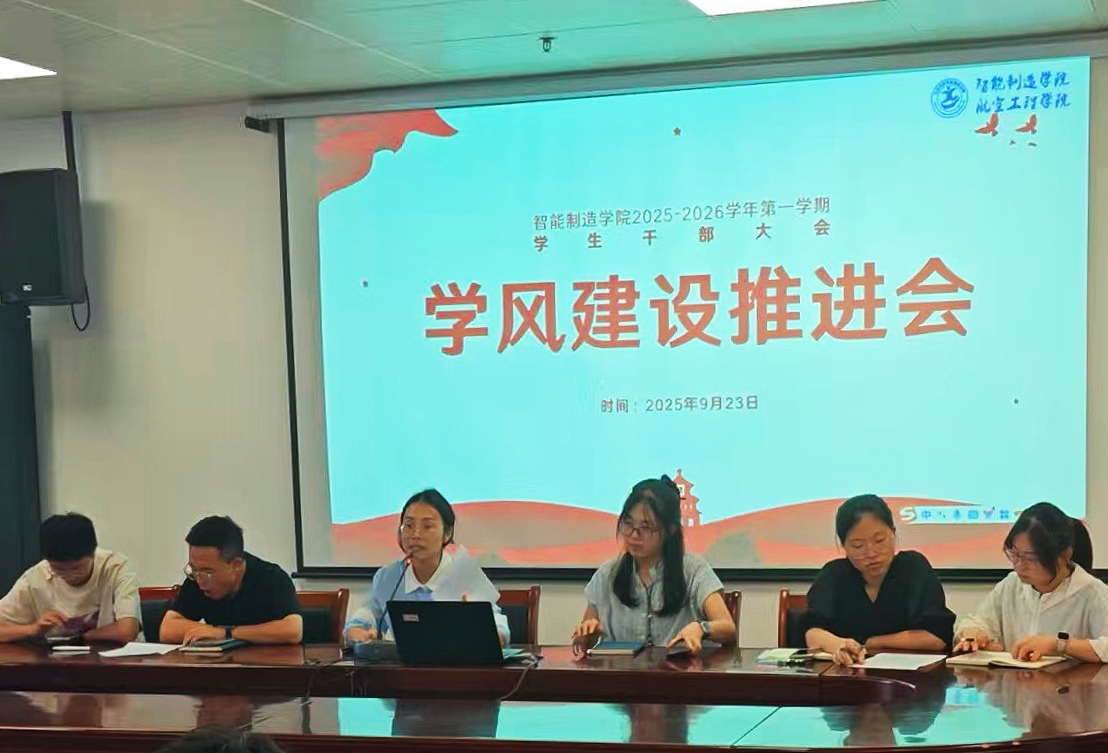 为进一步夯实学风建设基础,深化“课堂革命”内涵,9月23日,智能制造(航空工程)学院在航空楼S510召开新学期学风建设专题会议。学院党委委员、学工办主任刘湘主持会议,全体辅导员、团学会学习部干部、各班级三大班委及生活委员共同参会。
