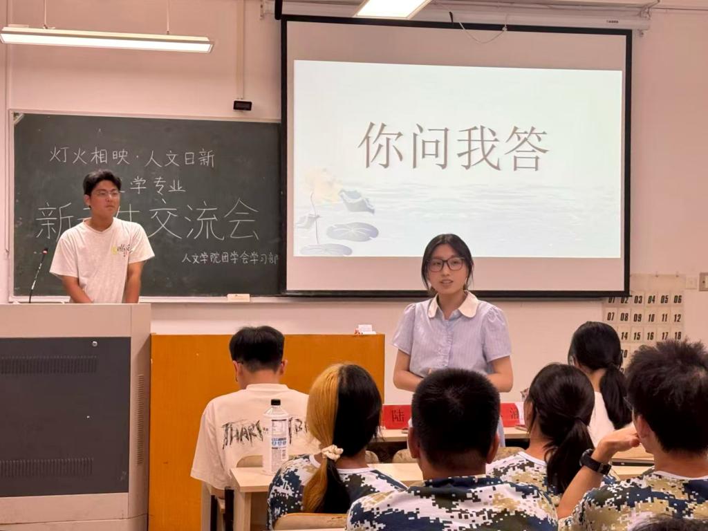 9月26日晚,人文学院于2102教室举办历史学(师范)专业新老生交流会。2022级历史学(师范)专业优秀学生代表卢浩、林涵、陆遇应邀分享经验,辅导员鹿宵宵、钱蕾出席活动,2025级历史学(师范)专业全体新生参会。