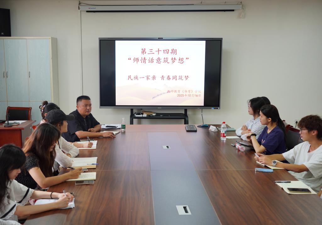 为深化民族团结教育,打造和合校园,引导学生互帮互助、共同成长,10月16日,教师教育(体育)学院举办民族团结主题“师情话意筑梦想”座谈会。吴磊、辅导员朱浩楠出席,各民族学生代表共同参与。