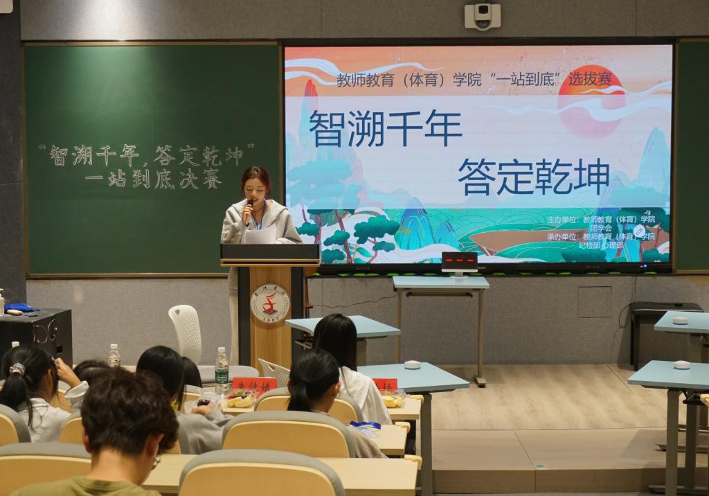 为拓宽学生知识面、激发学习热情,10月20日晚,教师教育(体育)学院“一站到底”知识竞赛决赛于A6教室举行。本次大赛由刘家伊主持。辅导员屈佳妮、朱佳婧、朱浩楠,团学会主席团成员以及各班级代表参加本次活动。