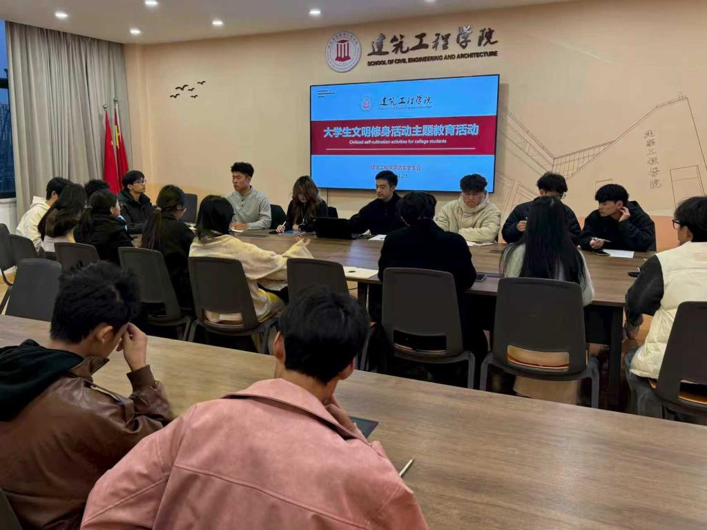 为全面落实立德树人根本任务,进一步加强学生思想政治与道德修养教育,建筑工程学院团委决定即日起至12月底开展大学生文明修身主题教育系列活动。本次工作部署会由学院团委书记薛军新主持,学院团学全体学生干部参会。