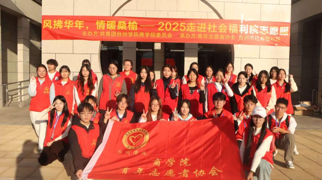 为弘扬孝亲敬老传统美德,涵养“老吾老以及人之老”的时代新风,11月29日,商学院青年志愿者协会协同台州市社会福利院举办了“风拂华年,情暖桑榆”——2025走近社会福利院志愿服务活动。此次活动共组织约32名学生志愿者前往台州市社会福利院。