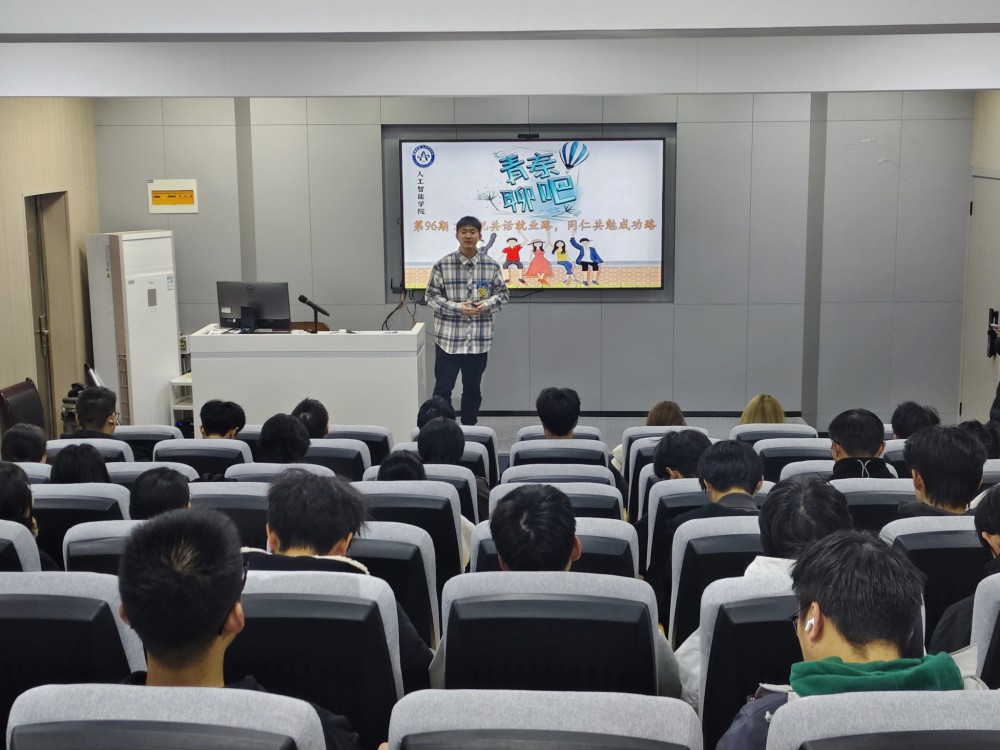 为帮助同学们明确奋斗目标、汲取榜样经验、提升综合竞争力,12月9日晚,人工智能学院举办第96期“青亲聊吧”活动,主题为“榜样引路明方向,考编求职筑未来”。本次活动特邀成功考取椒江区教育局编制的乐昕雨学长担任主讲嘉宾,50余名学生代表参与,辅导员耿秉凡出席。