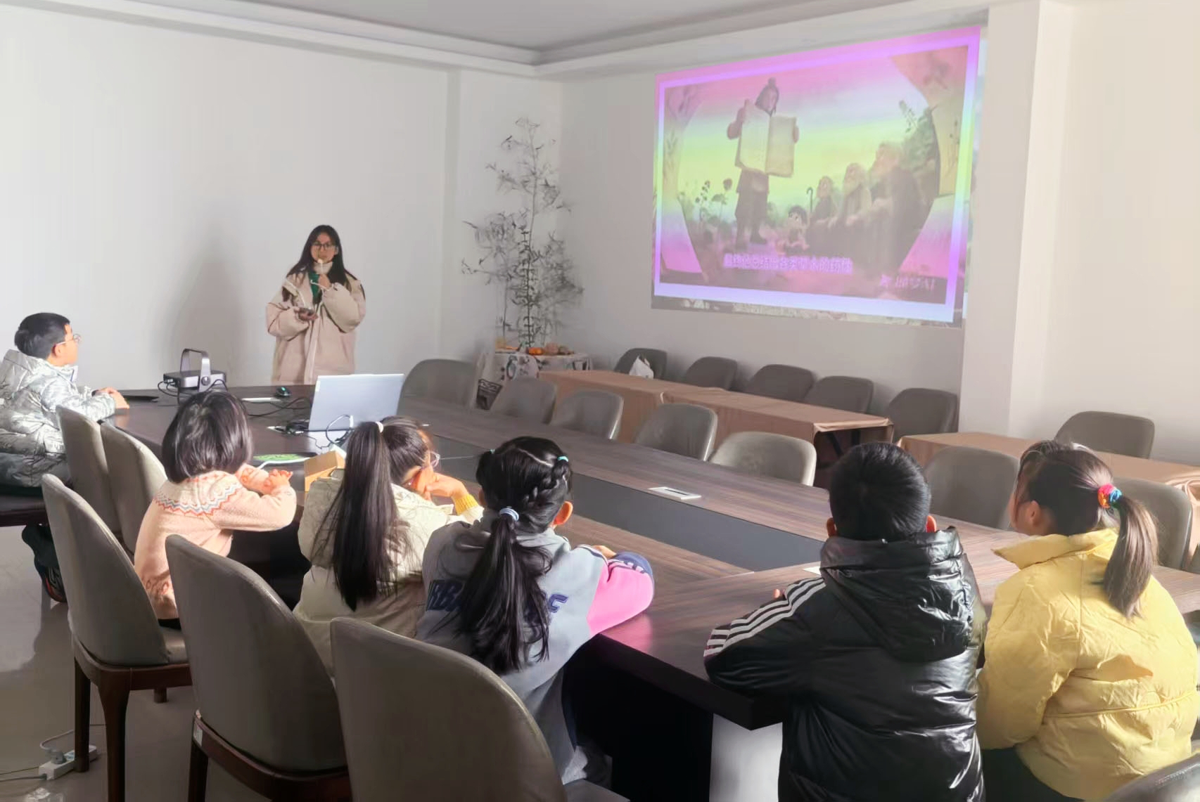 团队成员为孩子们讲解中药文化知识