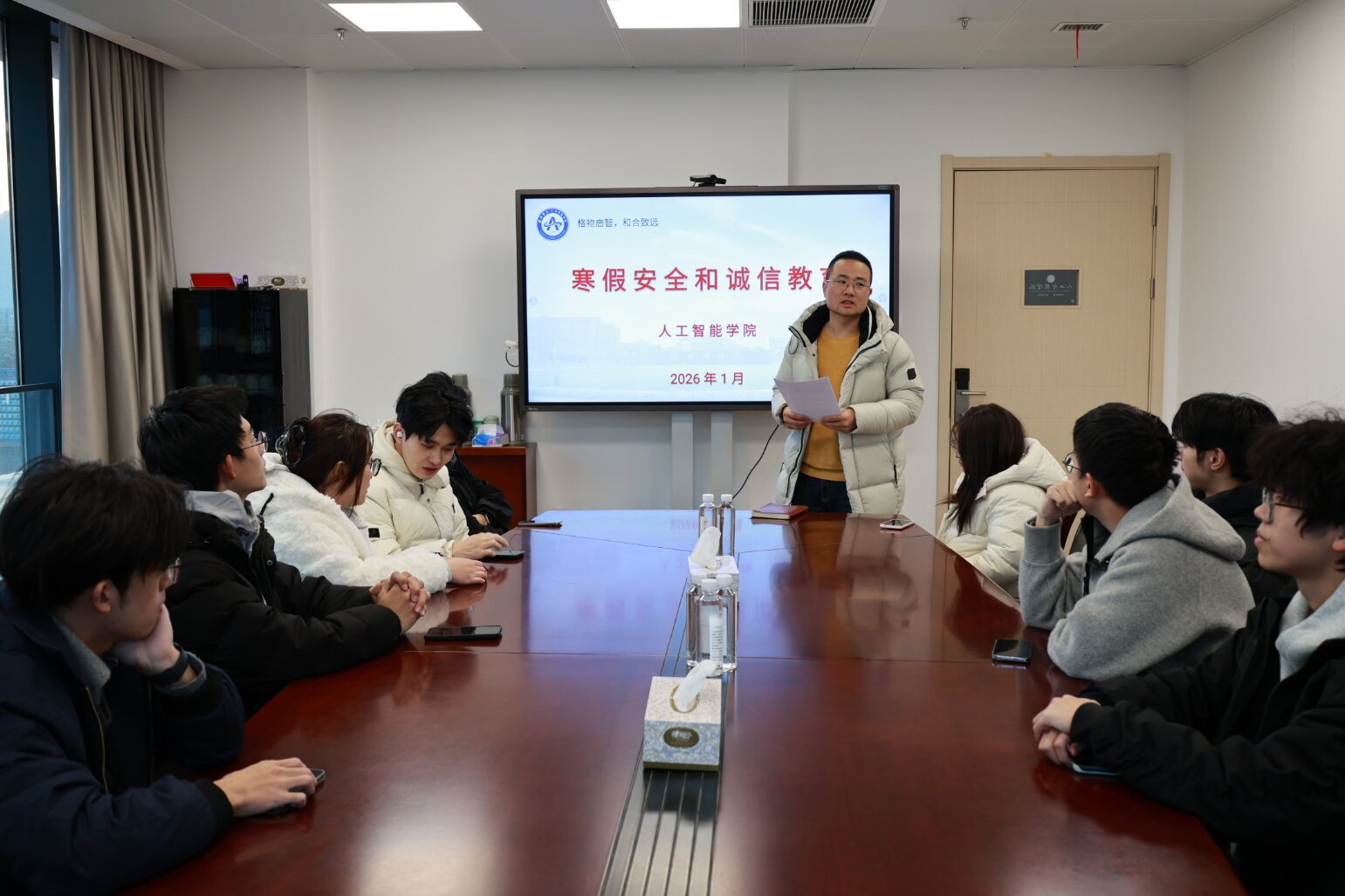 为切实做好期末及寒假期间学生管理与服务工作,进一步强化学生安全防范意识与诚信应考观念,1月7日,人工智能学院分校区组织召开期末安全教育大会。学工办公室主任陈婷婷、副主任郑行、各年级辅导员及全体学生干部参会。