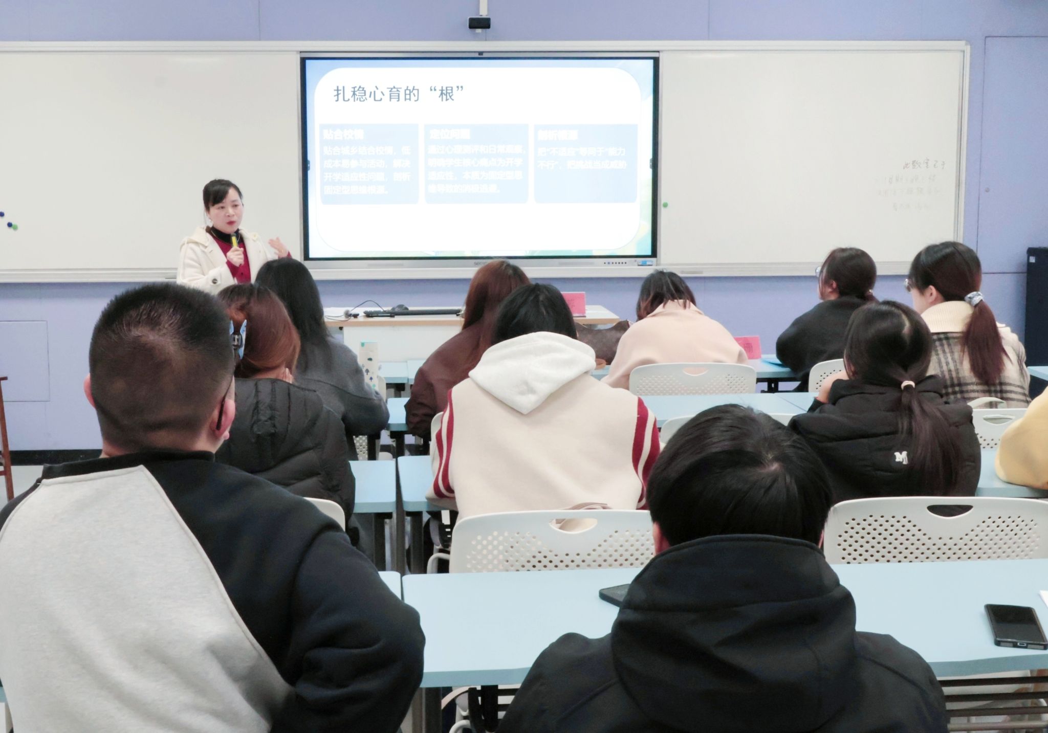 为搭建高校与一线教育联动平台,学习实用教学与管理技巧,3月12日晚,优秀教师教育教学与班级管理经验分享会于1102教室顺利举行。本次分享会由优秀教育工作者林蓉、吴珊、许新星主讲,24级英教3班全体学生参加。
